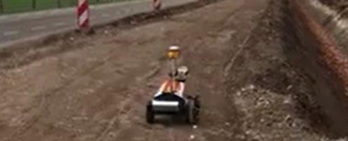 Roel (Rasenberg): „Erster Einsatz unseres neuen Roboters heute. Ebenso schöne Prüfung zwischen Bäumen und auf Schutt. Test bestanden.“