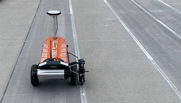 Robot Plotter aan het werk op het vliegveld van Stuttgart